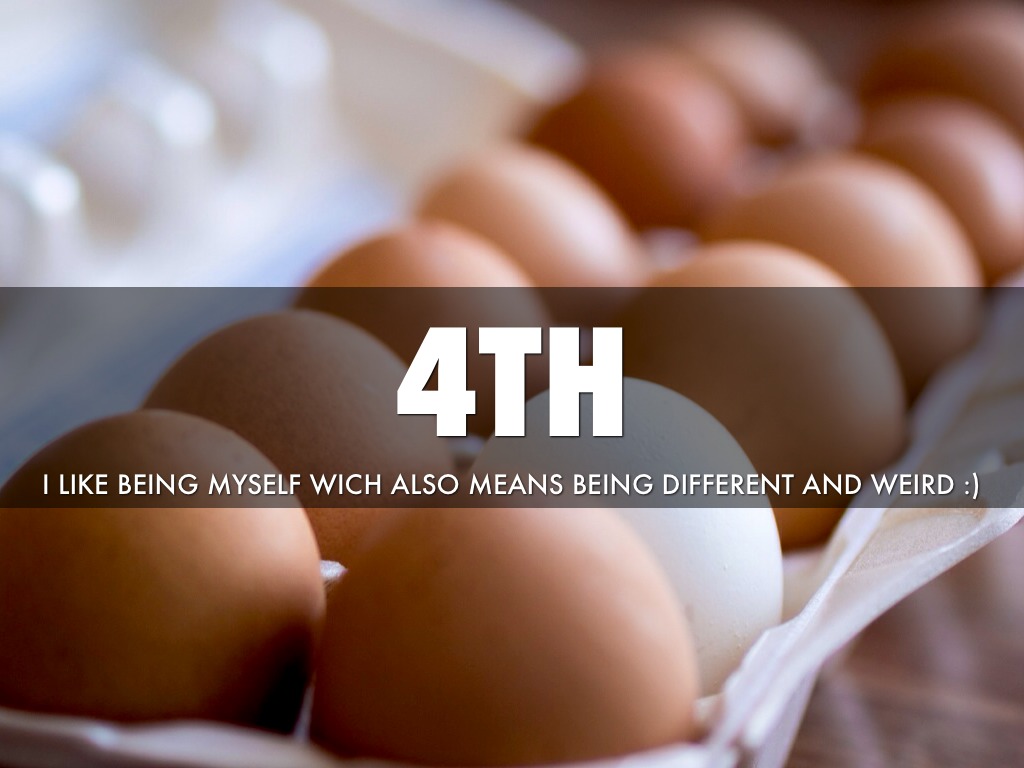 I LIKE BEING MYSELF WICH ALSO MEANS BEING DIFFERENT AND WEIRD :)