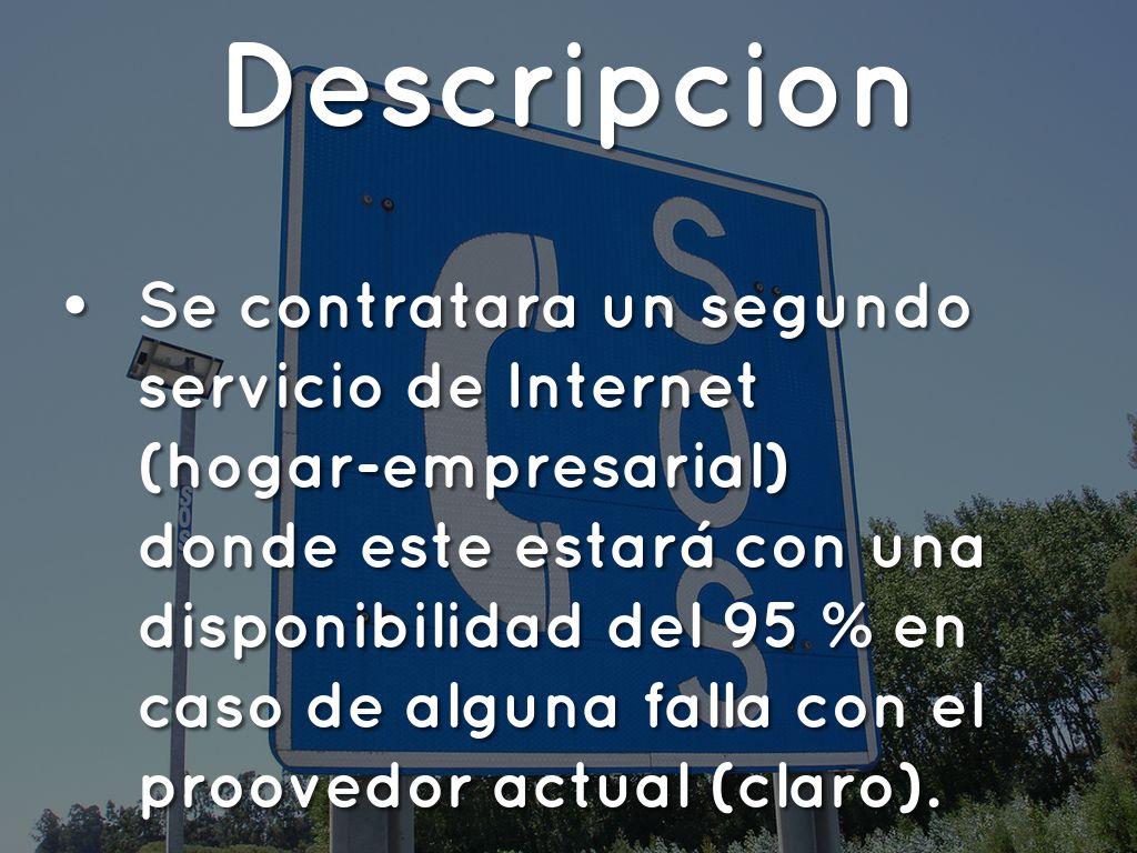 Se contratara un segundo servicio de Internet (hogar-empresarial) donde este estará con una disponibilidad del 95 % en caso de alguna falla con el proovedor actual (claro).