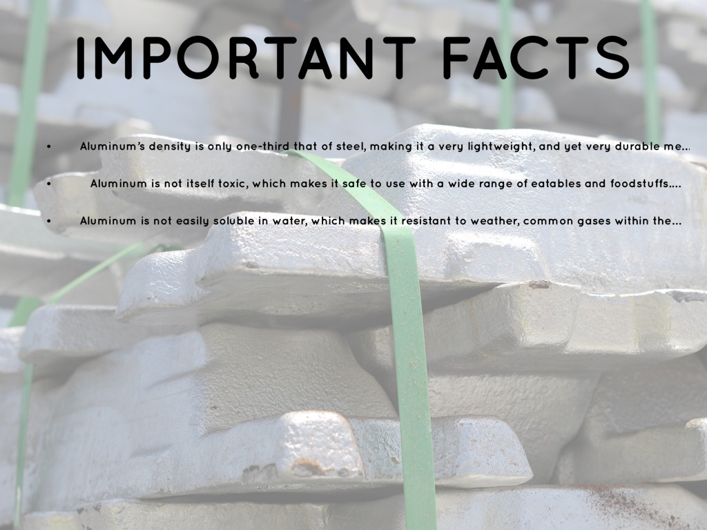 Aluminum is not easily soluble in water, which makes it resistant to weather, common gases within the atmosphere, and other liquids.