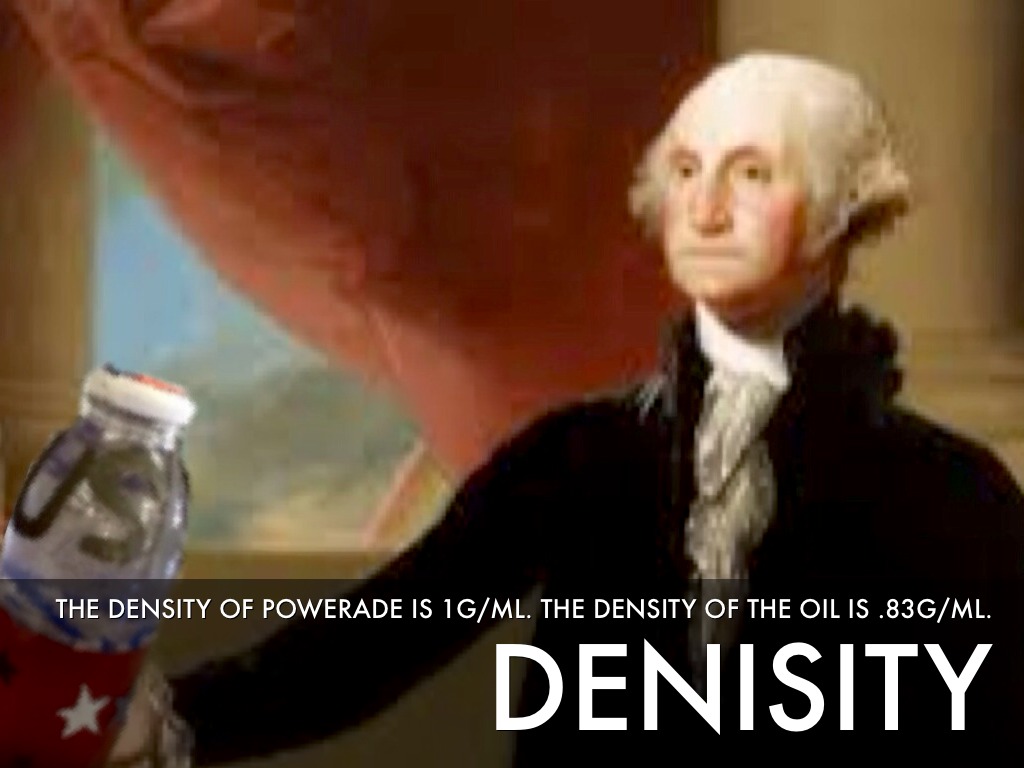 THE DENSITY OF POWERADE IS 1G/ML. THE DENSITY OF THE OIL IS .83G/ML.