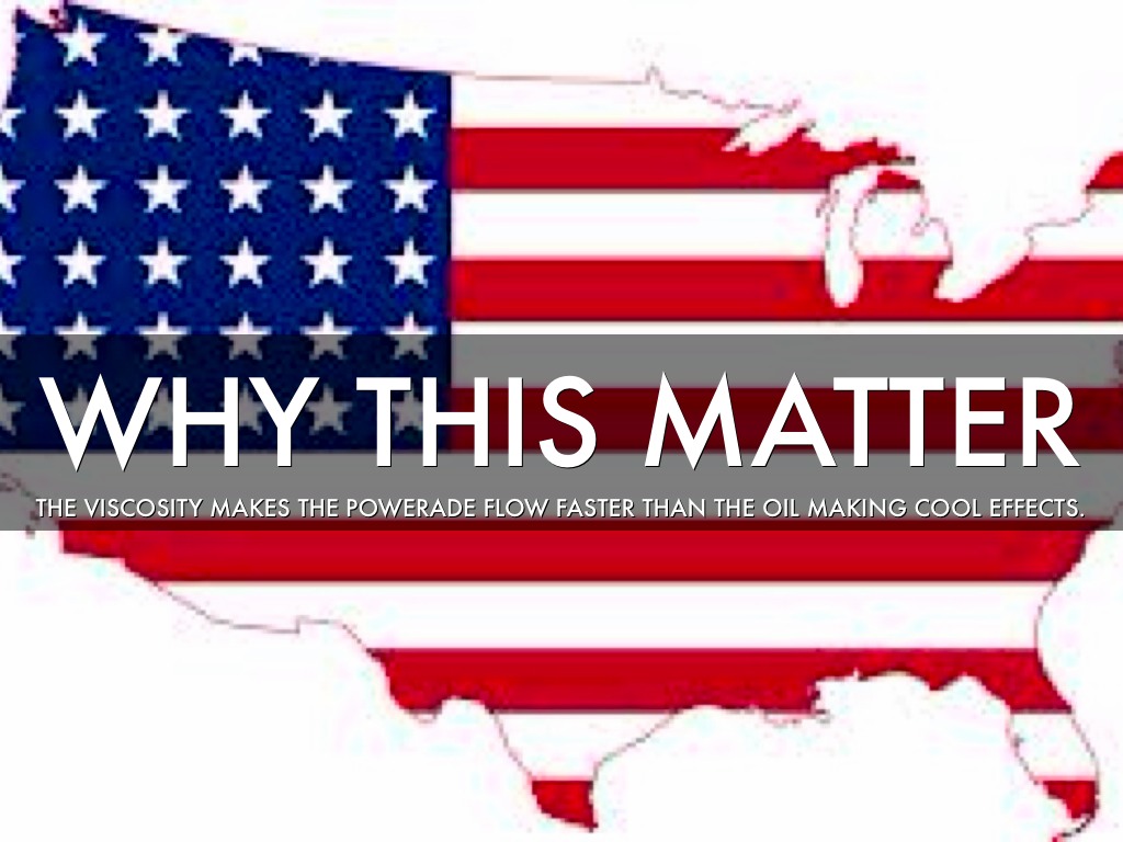 THE VISCOSITY MAKES THE POWERADE FLOW FASTER THAN THE OIL MAKING COOL EFFECTS.