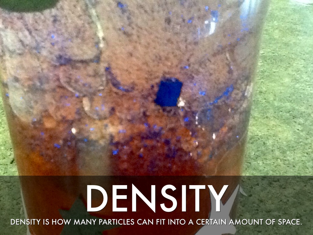 DENSITY IS HOW MANY PARTICLES CAN FIT INTO A CERTAIN AMOUNT OF SPACE.