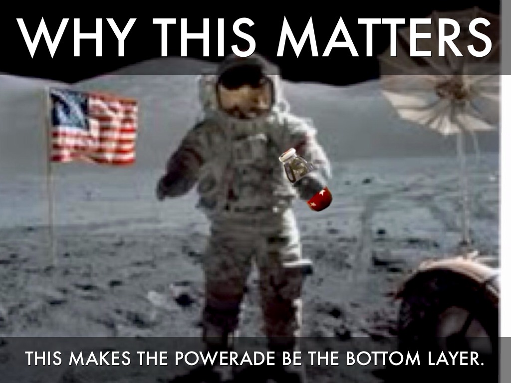 THIS MAKES THE POWERADE BE THE BOTTOM LAYER.