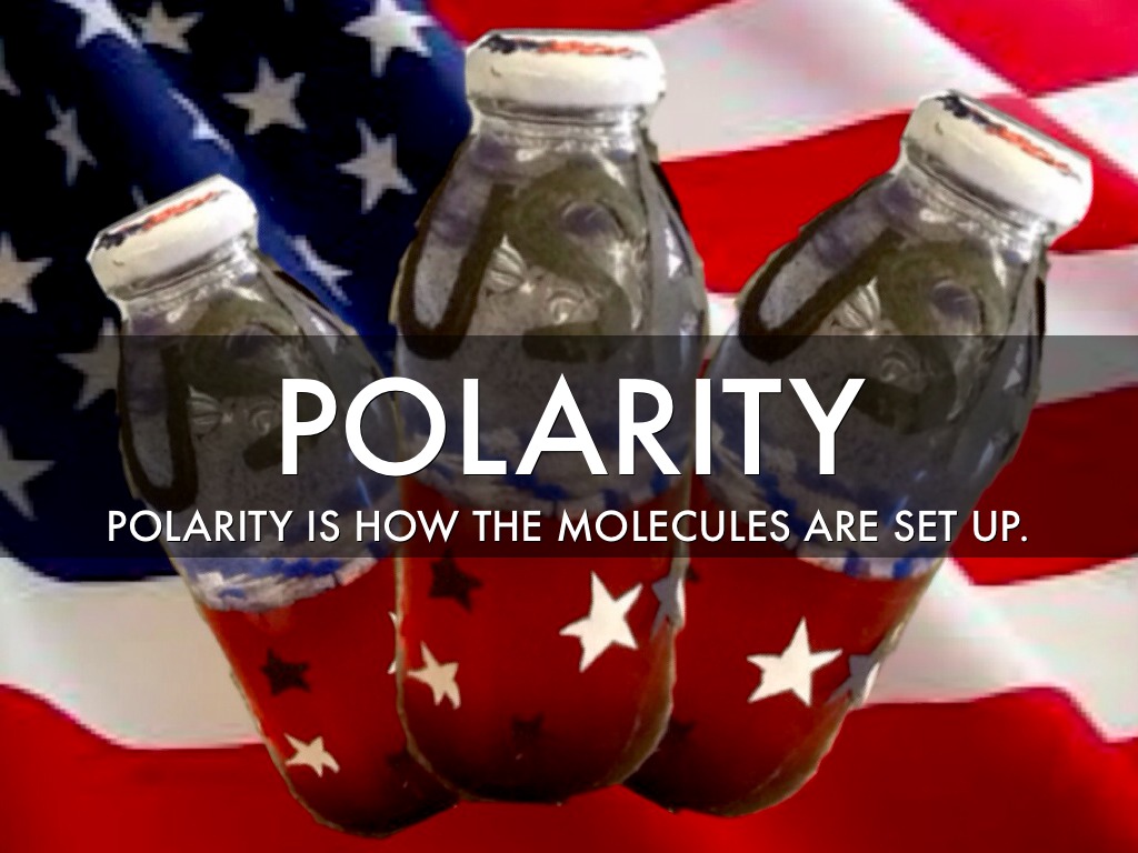 POLARITY IS HOW THE MOLECULES ARE SET UP.