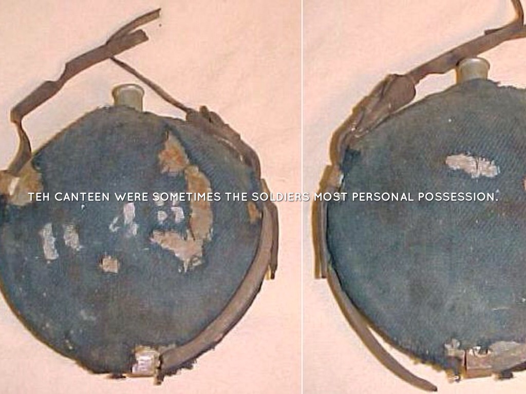 TEH CANTEEN WERE SOMETIMES THE SOLDIERS MOST PERSONAL POSSESSION.