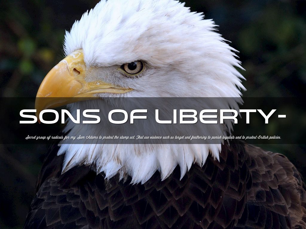 Secret group of radicals for my Sam Adams to protest the stamp act. That use violence such as target and feathering to punish loyalists and to protest British policies.