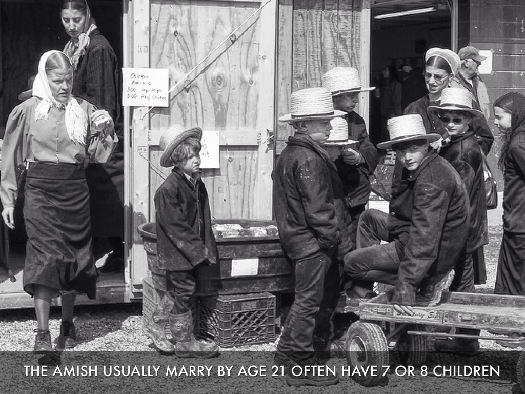 THE AMISH USUALLY MARRY BY AGE 21 OFTEN HAVE 7 OR 8 CHILDREN