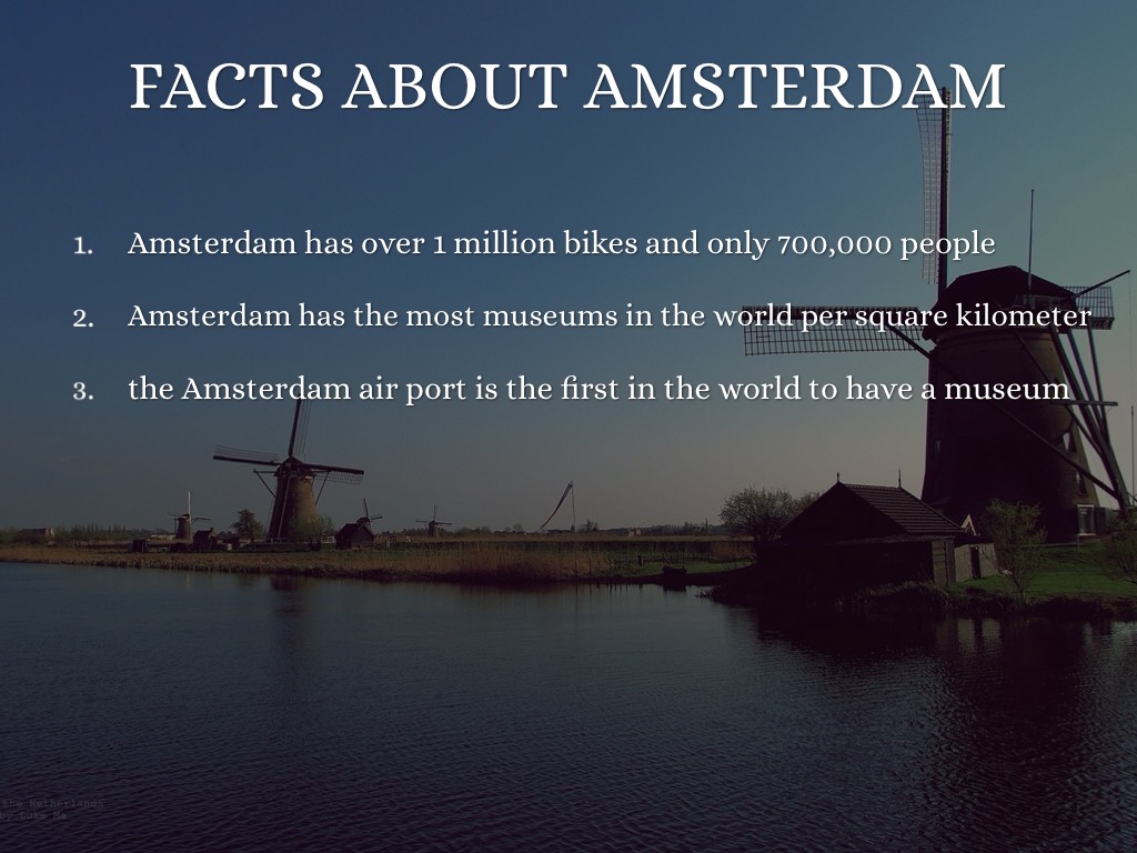 I want to go to Amsterdam because it seams very interesting and I like the art and I like how unique the public is along with the private.