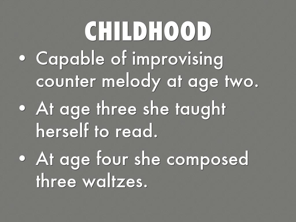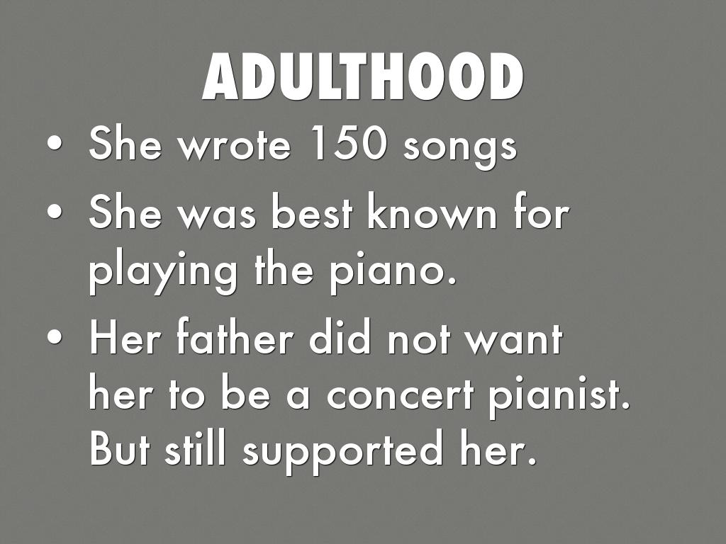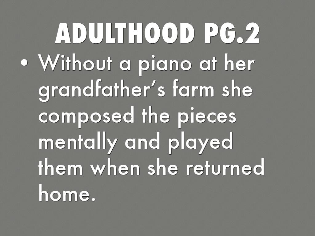 Without a piano at her grandfather’s farm she composed the pieces mentally and played them when she returned home.