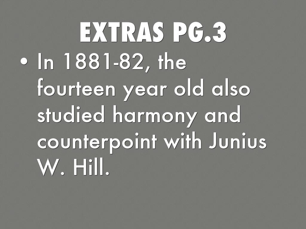 In 1881-82, the fourteen year old also studied harmony and counterpoint with Junius W. Hill.