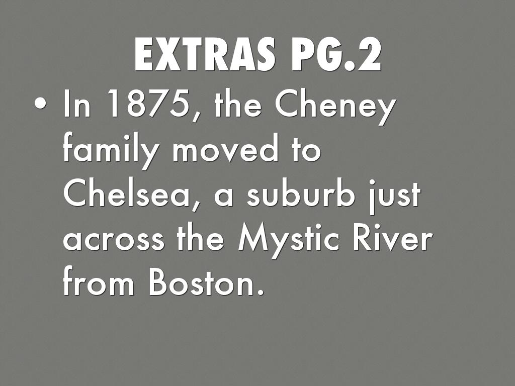 In 1875, the Cheney family moved to Chelsea, a suburb just across the Mystic River from Boston.