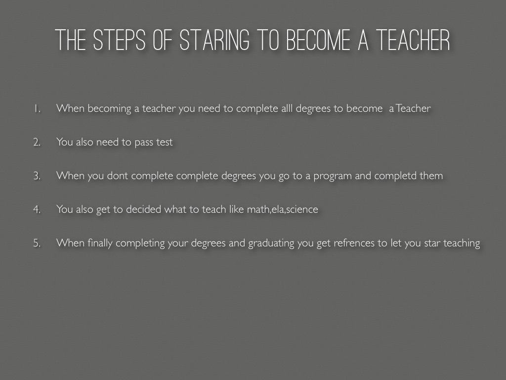 When becoming a teacher you need to complete alll degrees to become a Teacher