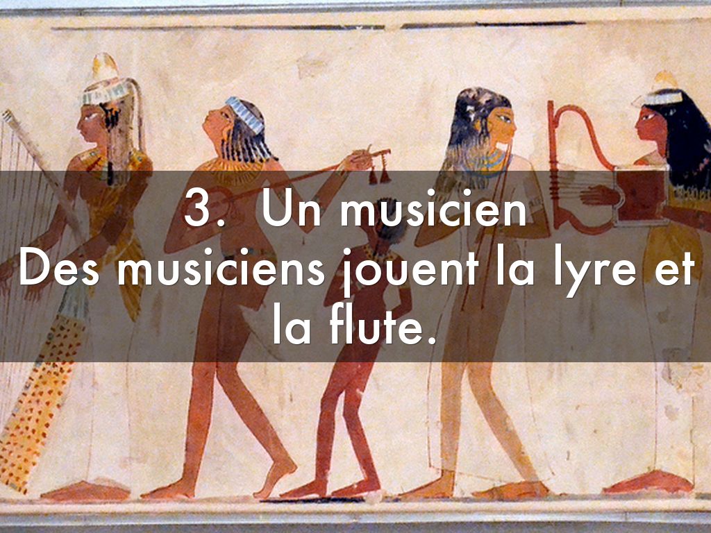 Des musiciens jouent la lyre et la flute.