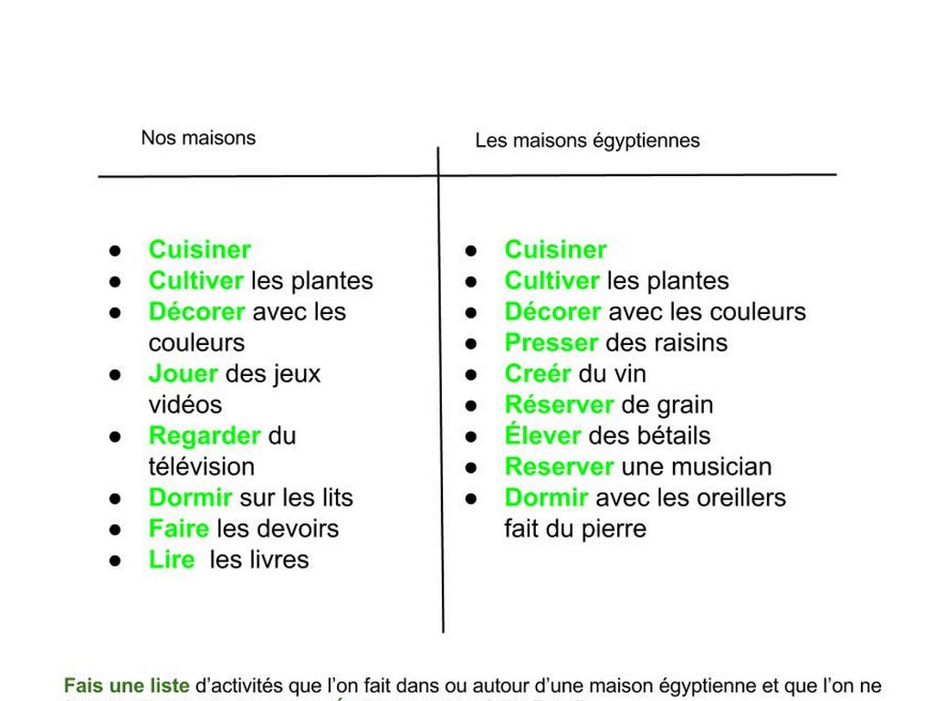 Les maisons des Egyptiennes ont beaucoup de chambres.