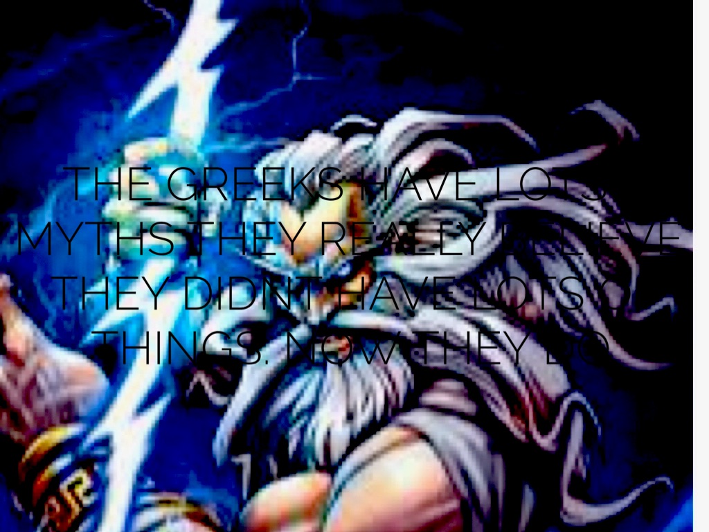 THE GREEKS HAVE LOTS OF MYTHS THEY REALLY BELIEVE. THEY DIDNT HAVE LOTS OF THINGS. NOW THEY DO.