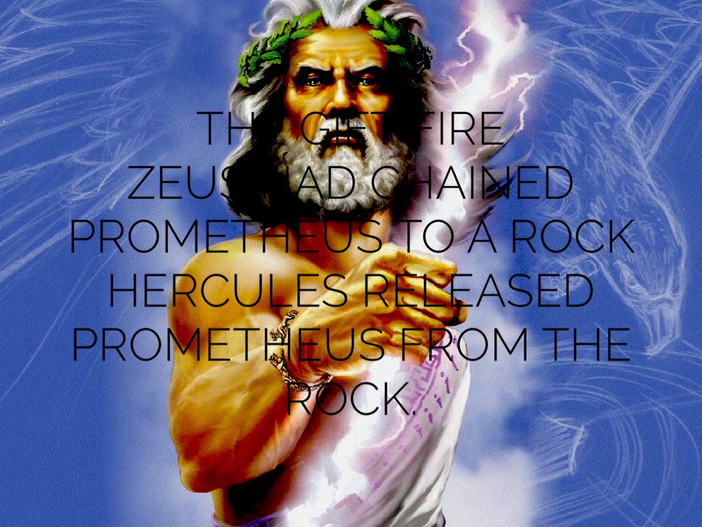 ZEUS HAD CHAINED PROMETHEUS TO A ROCK HERCULES RELEASED PROMETHEUS FROM THE ROCK.