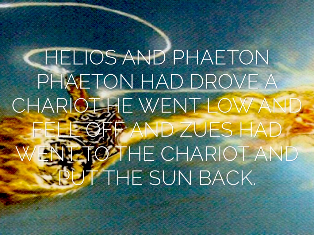 PHAETON HAD DROVE A CHARIOT HE WENT LOW AND FELL OFF AND ZUES HAD WENT TO THE CHARIOT AND PUT THE SUN BACK.