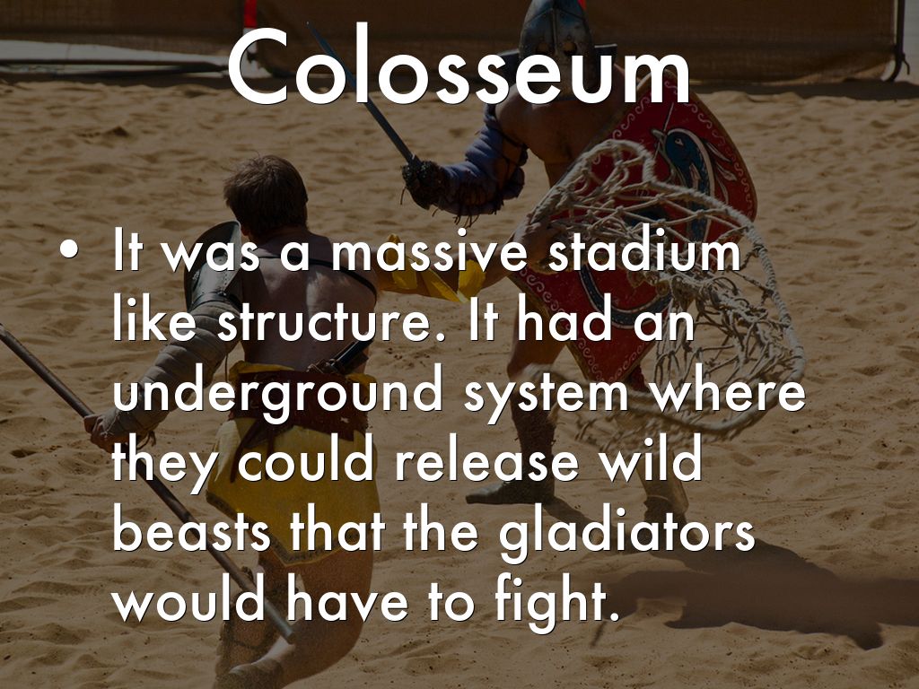 It was a massive stadium like structure. It had an underground system where they could release wild beasts that the gladiators would have to fight.