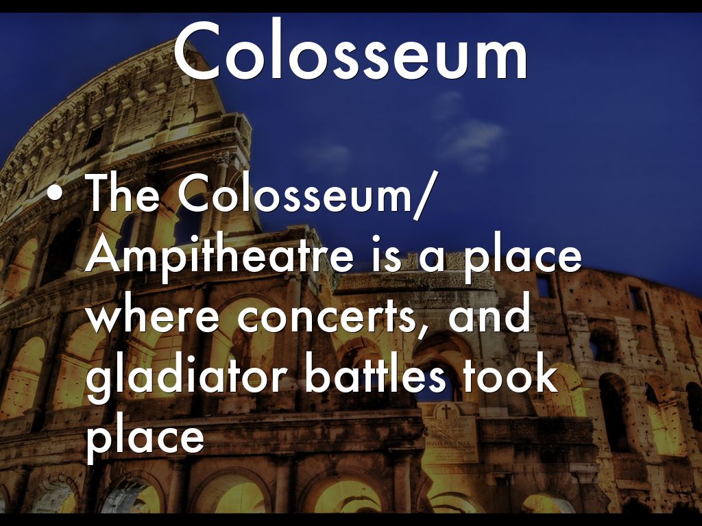 The Colosseum/ Ampitheatre is a place where concerts, and gladiator battles took place