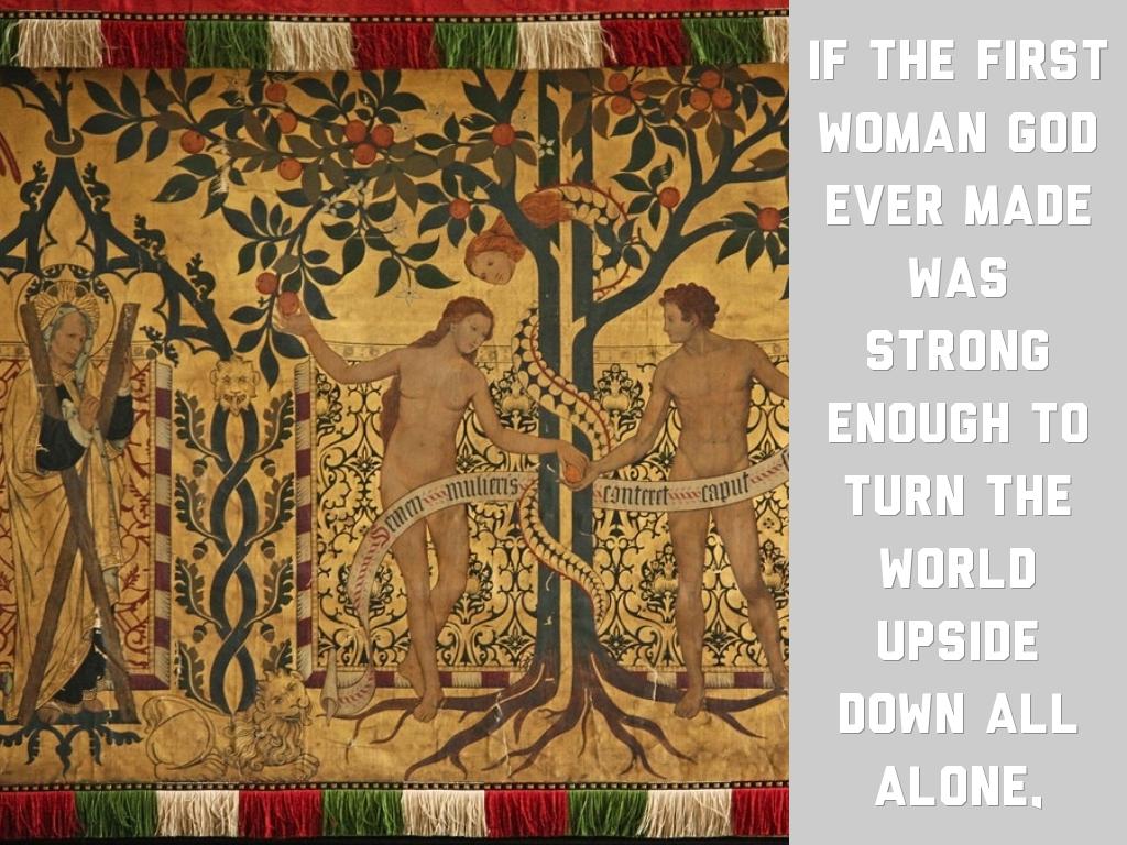 If the first woman god ever made was strong enough to turn the world upside down all alone,