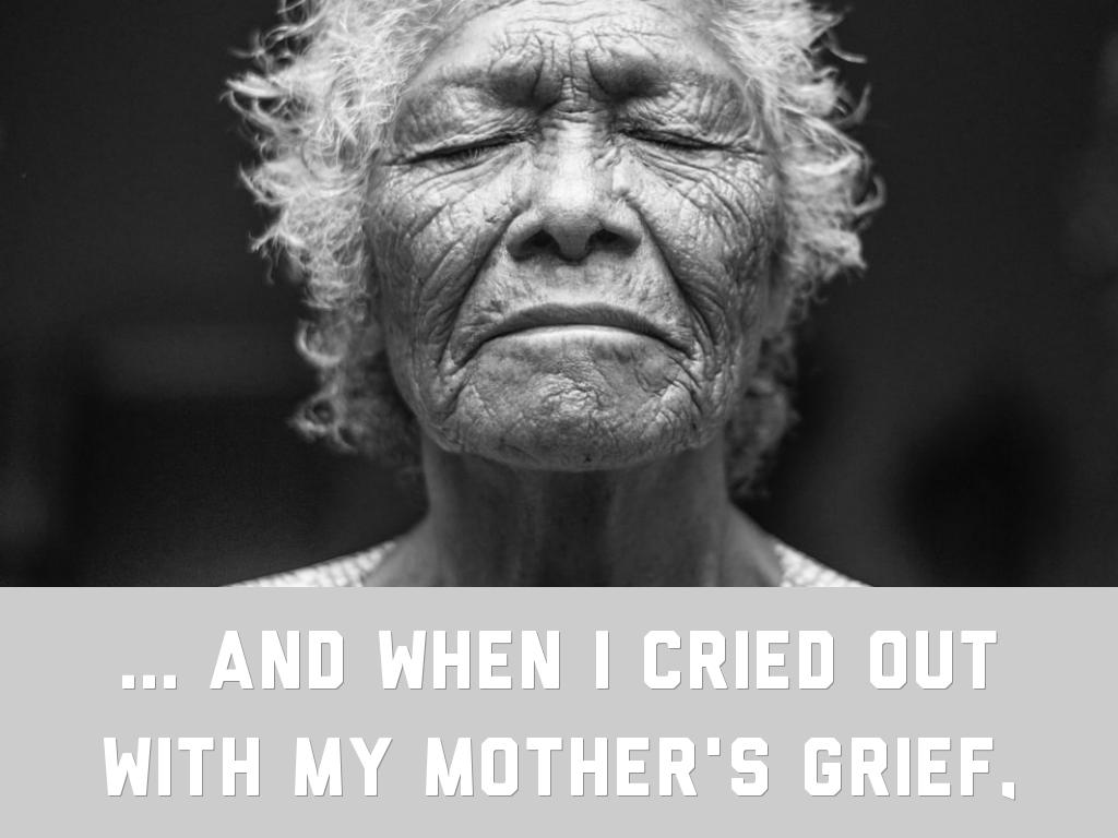 ... and when I cried out with my mother's grief,