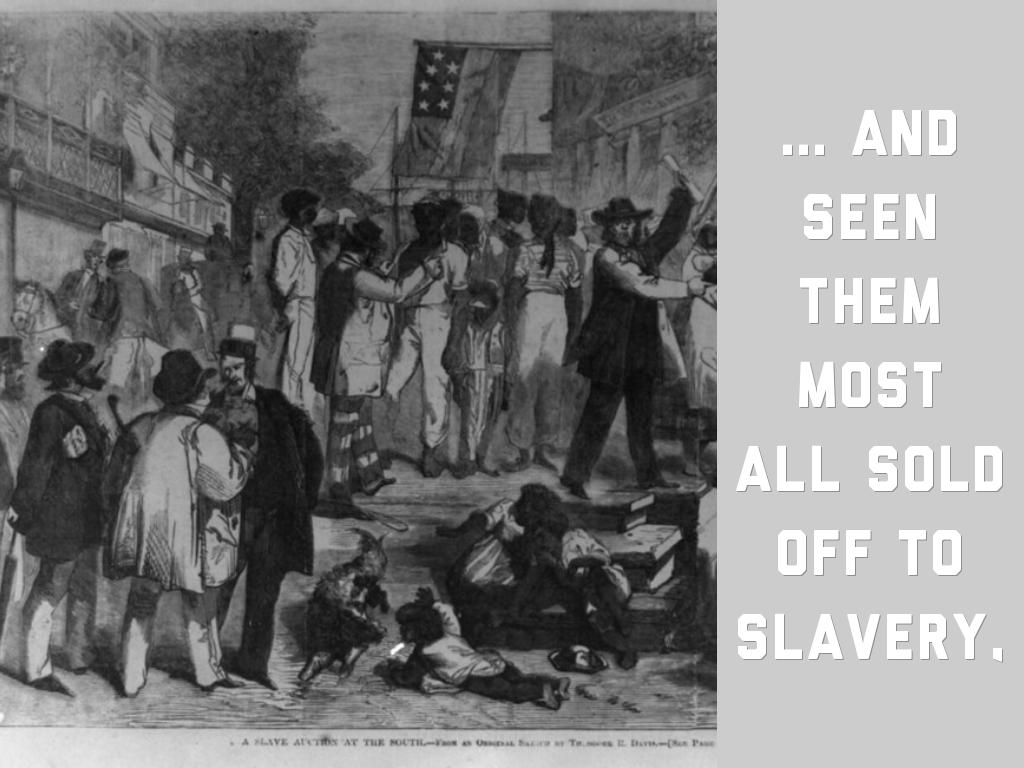 ... And seen them most all sold off to slavery,