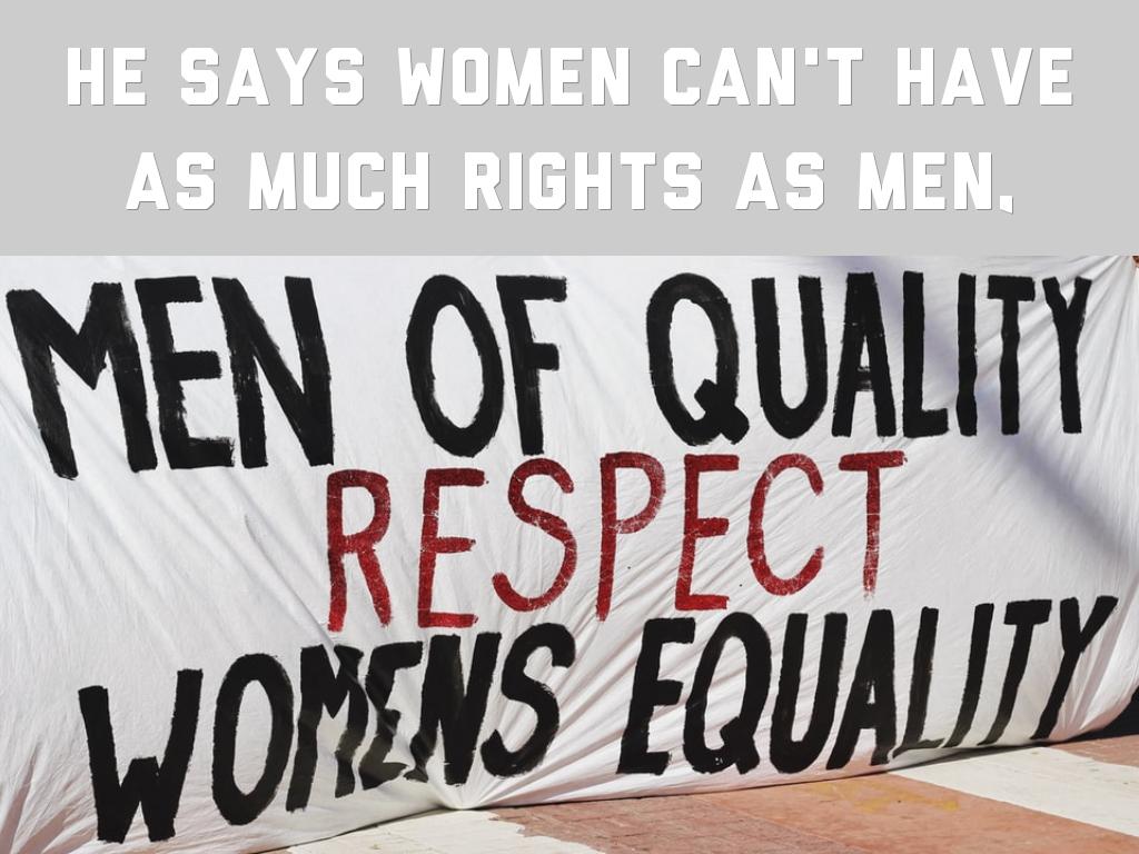he says women can't have as much rights as men,