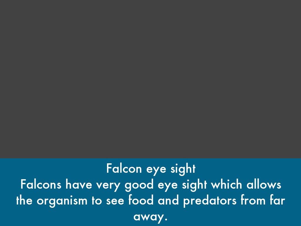 Falcons have very good eye sight which allows the organism to see food and predators from far away.