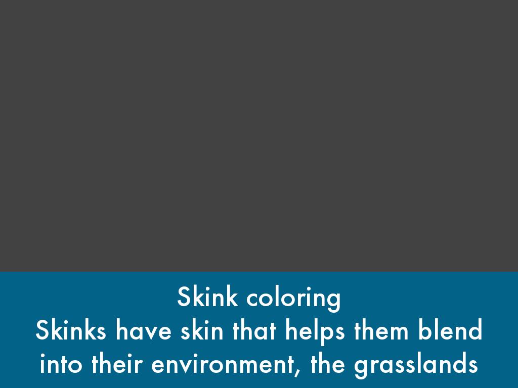 Skinks have skin that helps them blend into their environment, the grasslands.