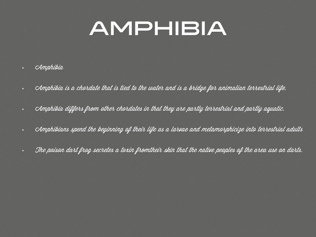 Amphibia is a chordate that is tied to the water and is a bridge for animalian terrestrial life.