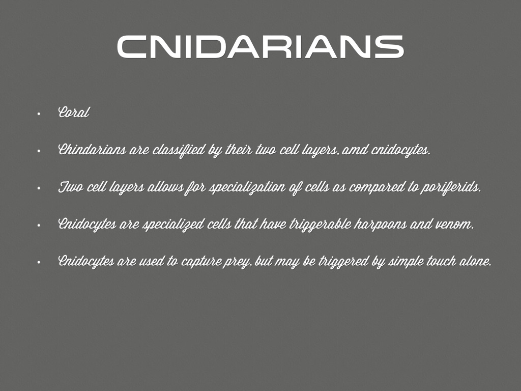 Chindarians are classified by their two cell layers, amd cnidocytes.