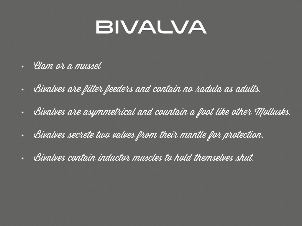 Bivalves are asymmetrical and countain a foot like other Mollusks.