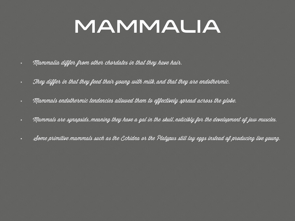 Mammalia differ from other chordates in that they have hair.