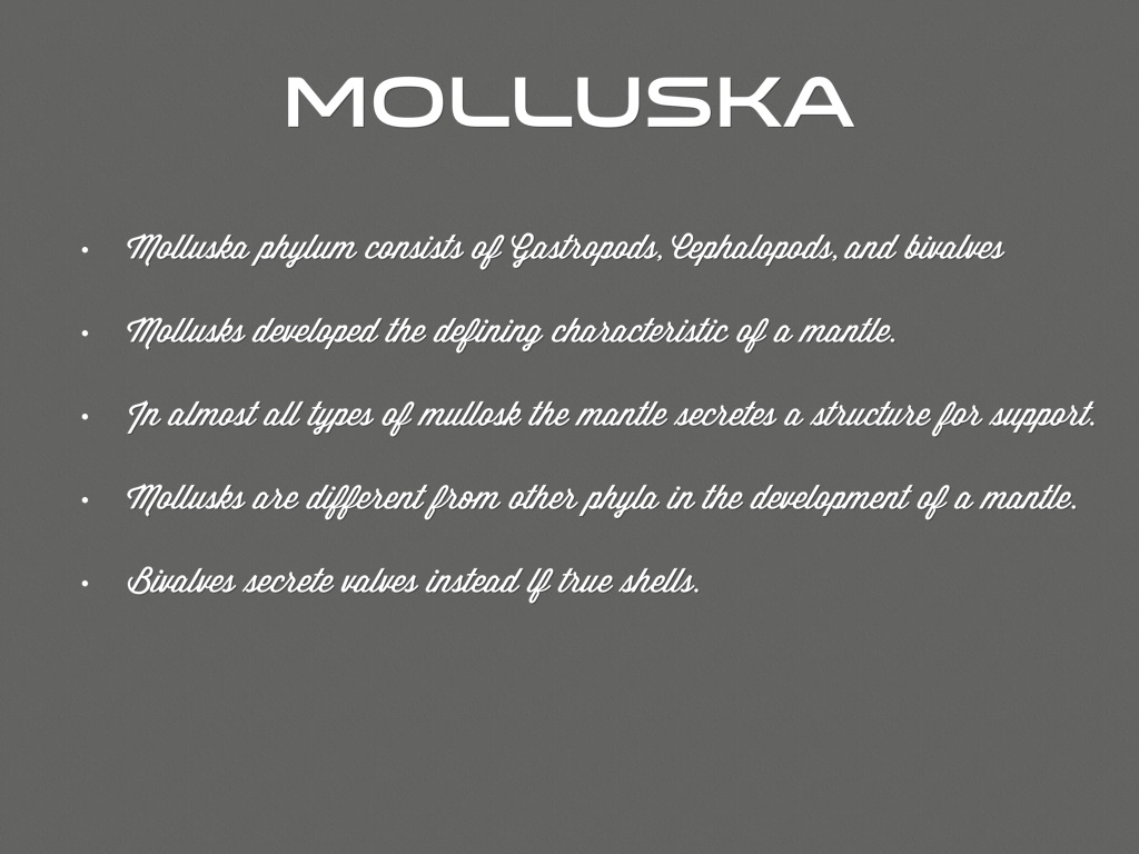 Molluska phylum consists of Gastropods, Cephalopods, and bivalves