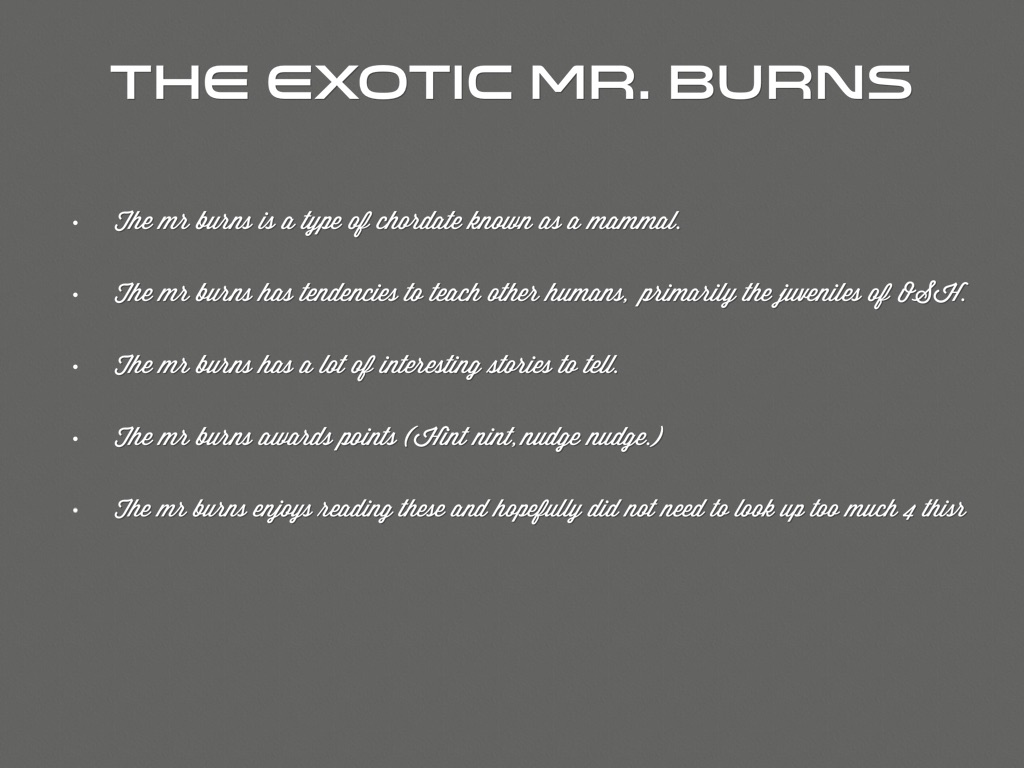 The mr burns enjoys reading these and hopefully did not need to look up too much 4 thisr