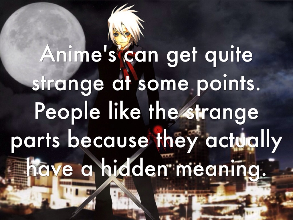 Anime's can get quite strange at some points. People like the strange parts because they actually have a hidden meaning.