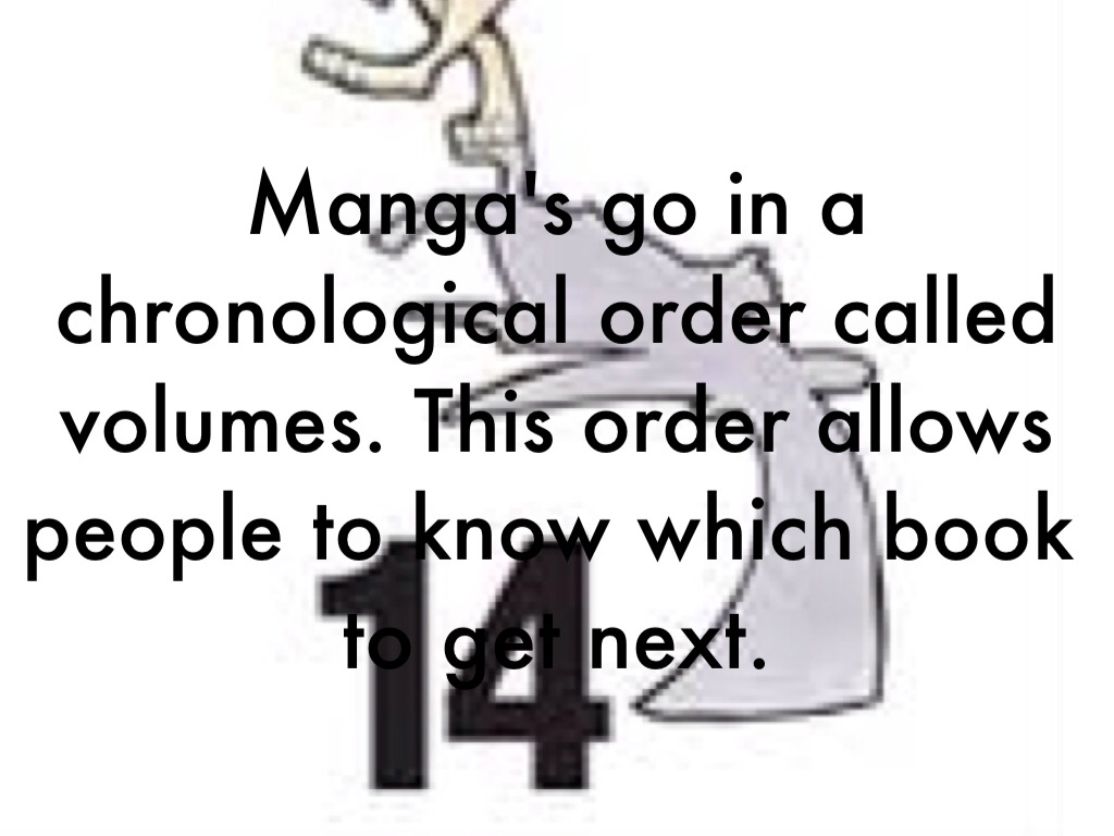 Manga's go in a chronological order called volumes. This order allows people to know which book to get next.