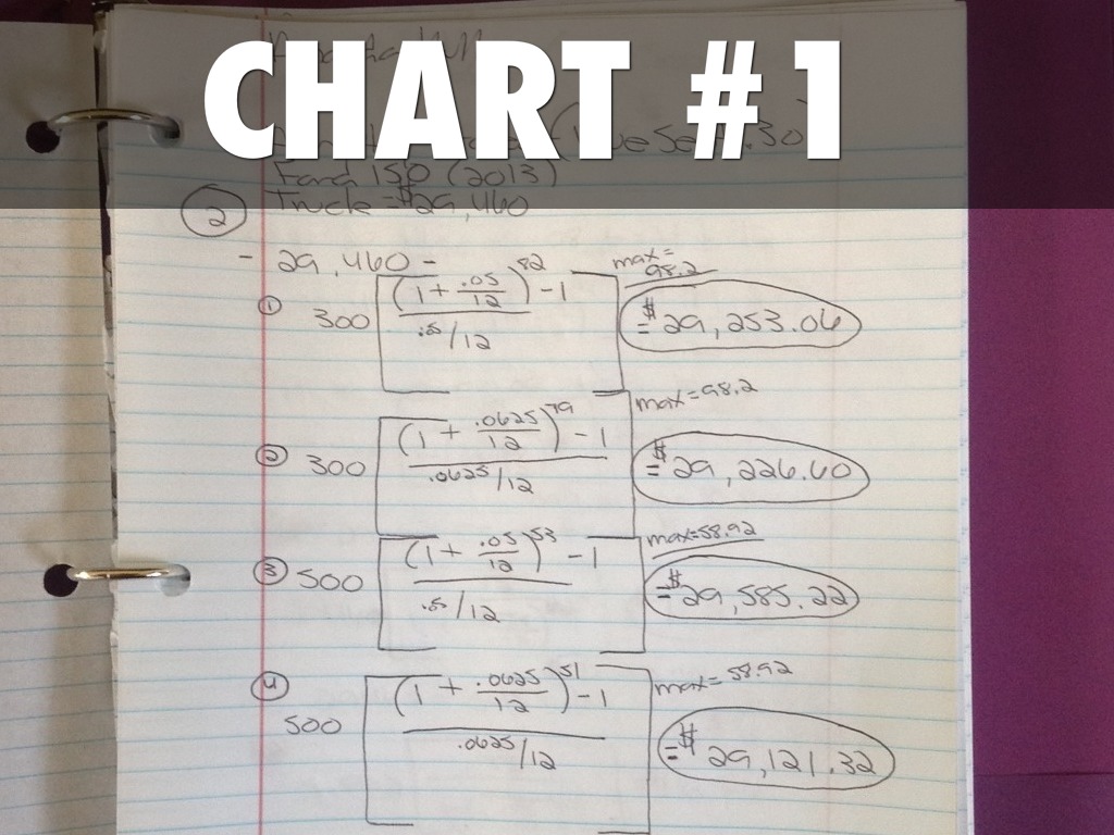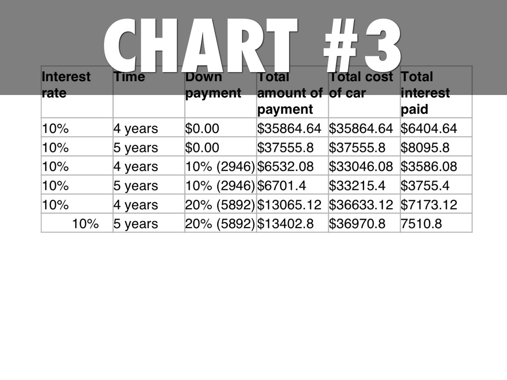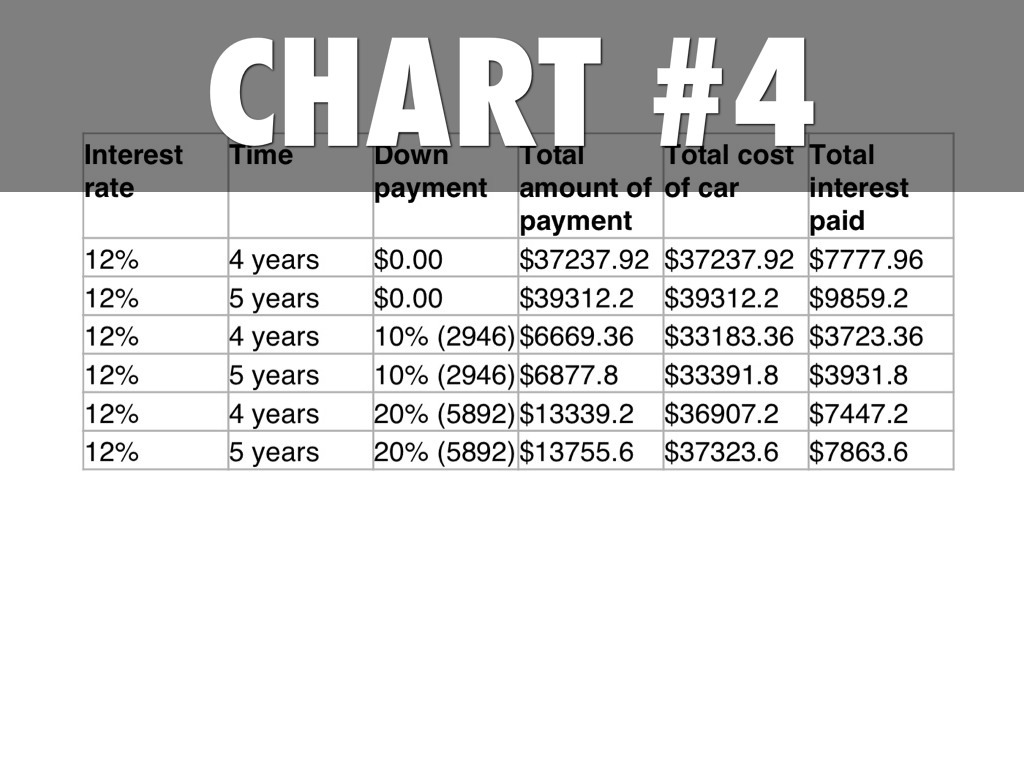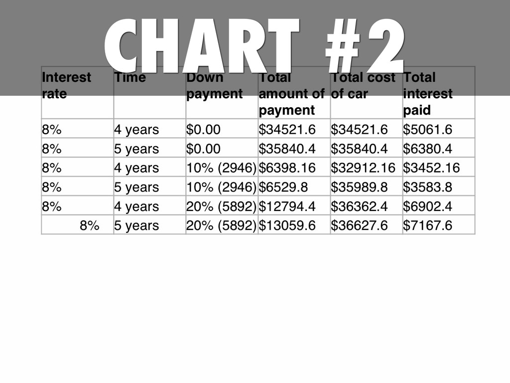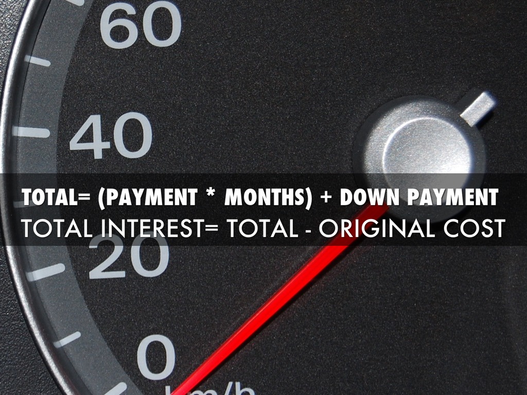 TOTAL= (PAYMENT * MONTHS) + DOWN PAYMENT