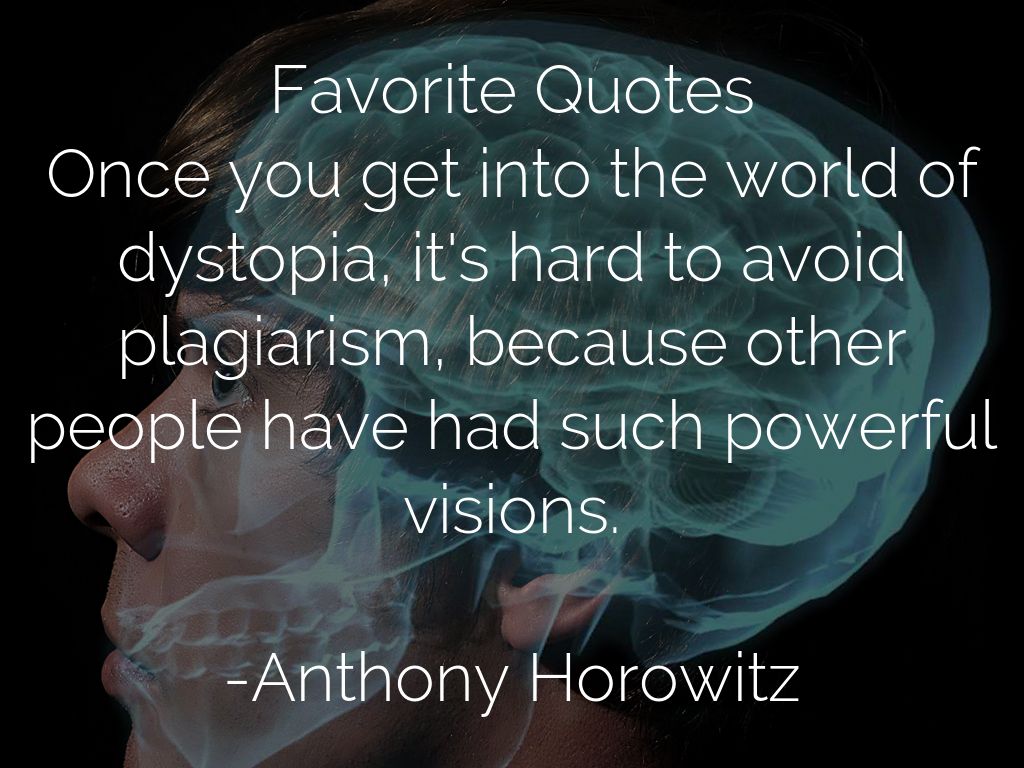 Once you get into the world of dystopia, it's hard to avoid plagiarism, because other people have had such powerful visions.
