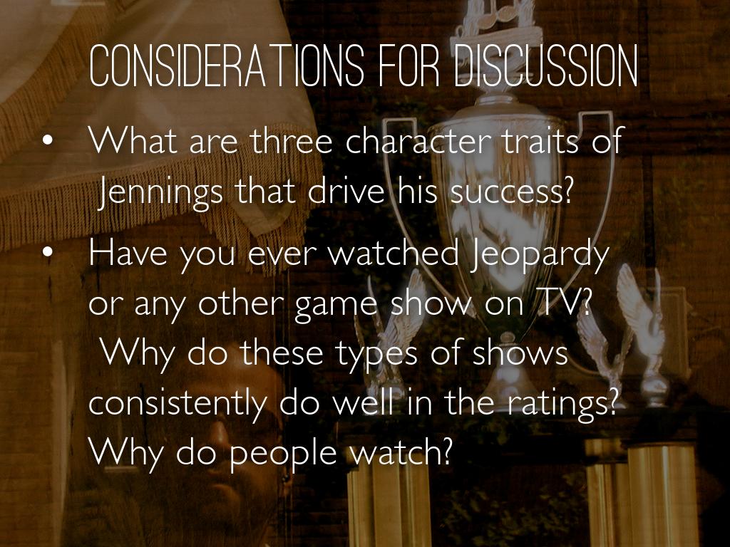 Have you ever watched Jeopardy or any other game show on TV? Why do these types of shows consistently do well in the ratings? Why do people watch?