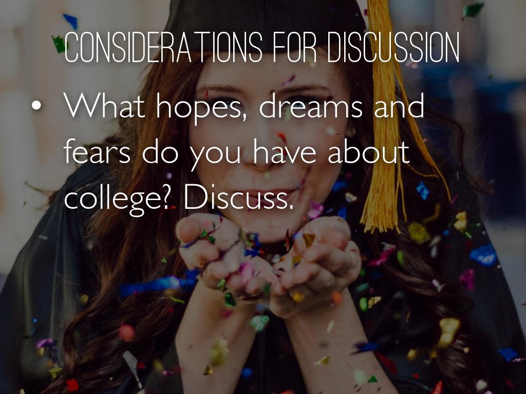 What hopes, dreams and fears do you have about college? Discuss.