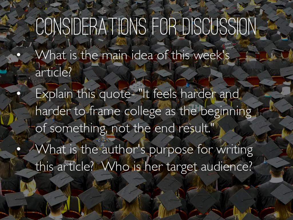 Explain this quote- "It feels harder and harder to frame college as the beginning of something, not the end result."