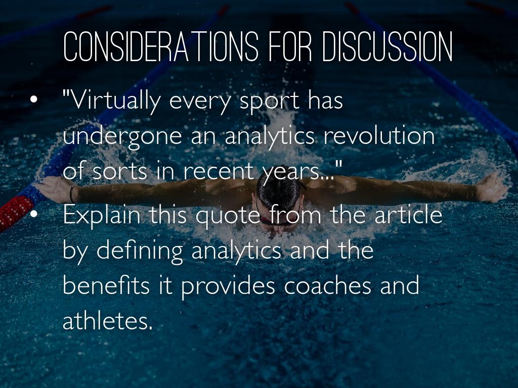 Explain this quote from the article by defining analytics and the benefits it provides coaches and athletes.