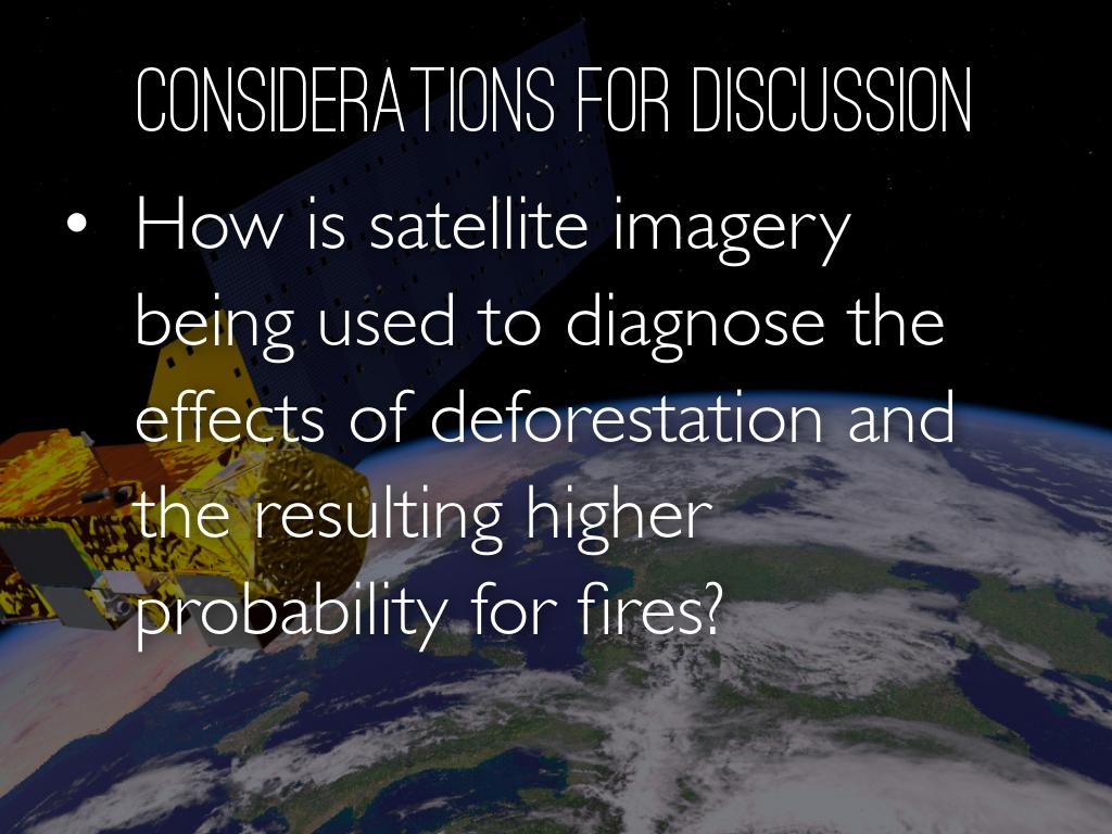 How is satellite imagery being used to diagnose the effects of deforestation and the resulting higher probability for fires?