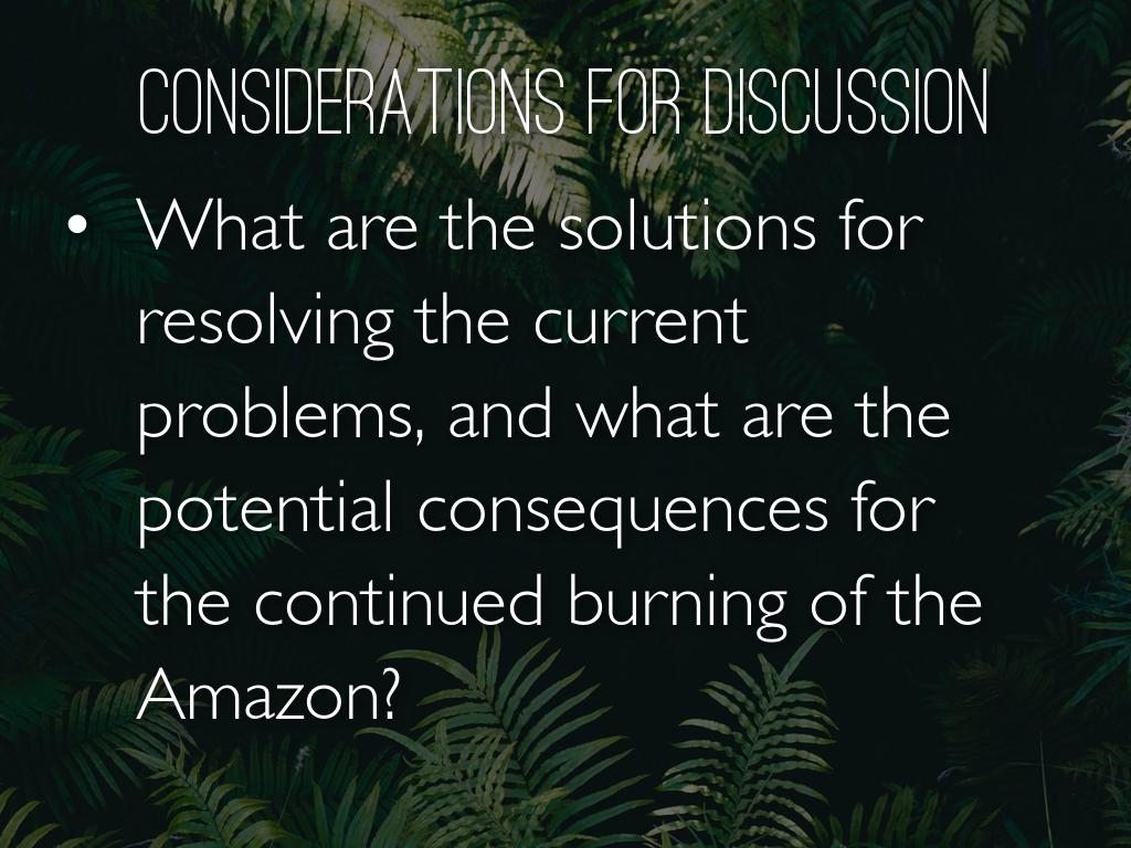 What are the solutions for resolving the current problems, and what are the potential consequences for the continued burning of the Amazon?