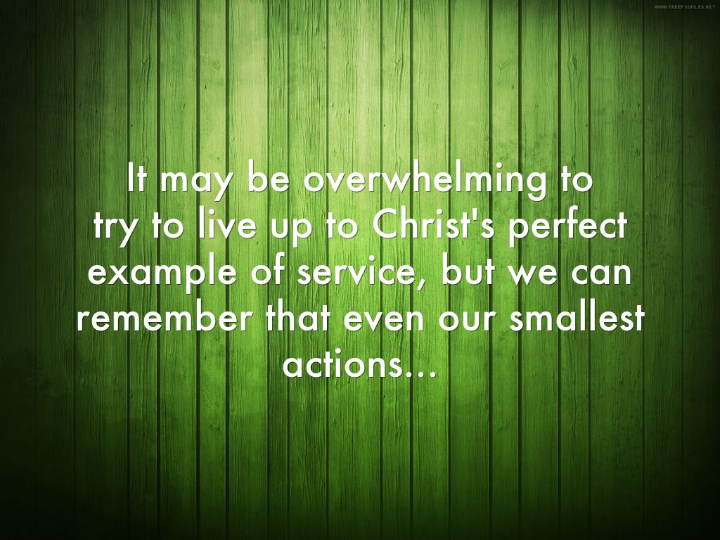 try to live up to Christ's perfect example of service, but we can remember that even our smallest actions...