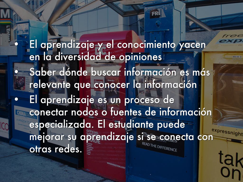 El aprendizaje es un proceso de conectar nodos o fuentes de información especializada. El estudiante puede mejorar su aprendizaje si se conecta con otras redes.