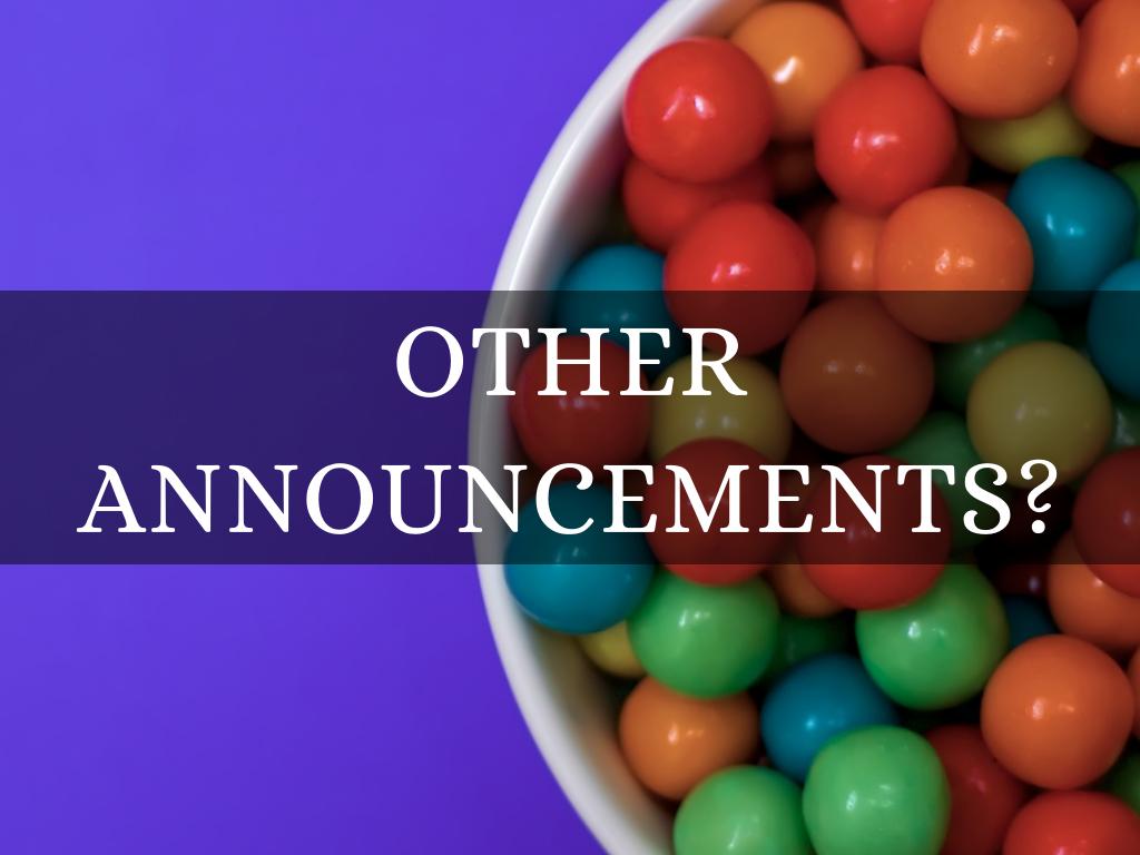 OTHER ANNOUNCEMENTS?