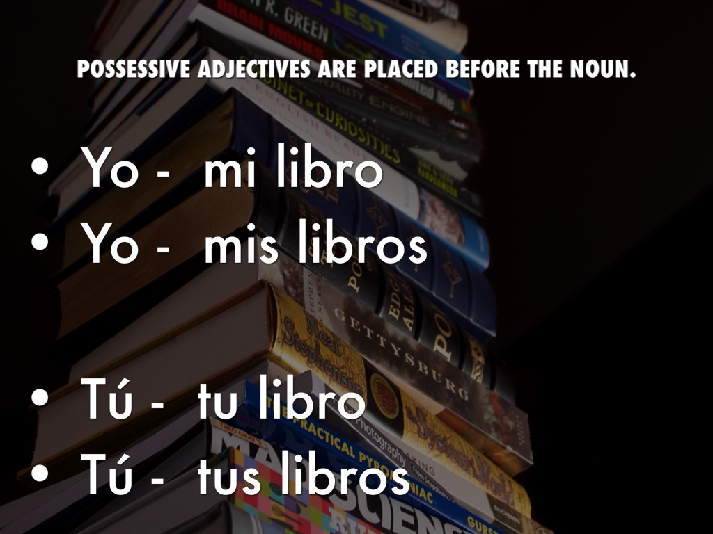 POSSESSIVE ADJECTIVES ARE PLACED BEFORE THE NOUN.