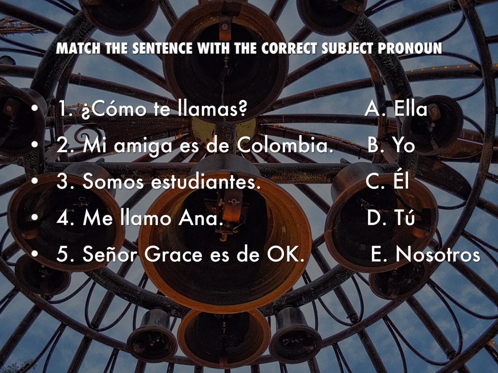 MATCH THE SENTENCE WITH THE CORRECT SUBJECT PRONOUN